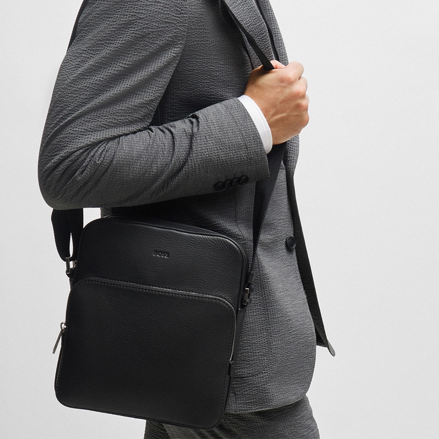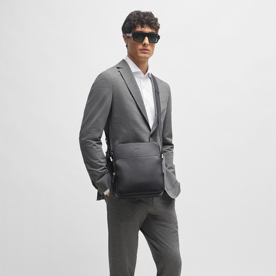 A slimline envelope bag by BOSS Menswear for hands-free styling. Crafted in refined Italian leather with a rich grain. Understated branding. Measurements: 24 x 21 x 1.5cm
