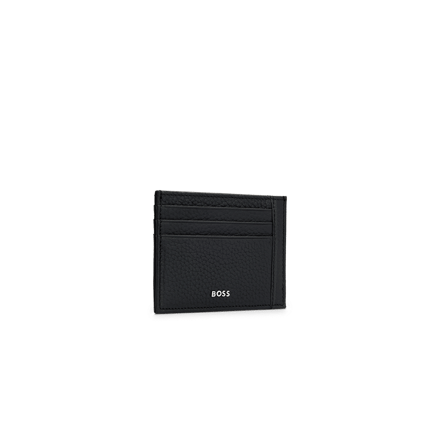 A refined card holder by BOSS, crafted in grained Italian leather with silver-tone logo lettering.