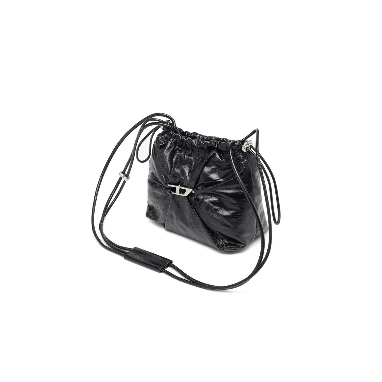 A brand new shape, this women’s bucket bag is crafted from shiny leather that is artfully crushed around the iconic metal D logo, lending the accessory a modern twist. The drawstrings and strap, inspired by sportswear, are elevated with sleek metal accents. Compact yet functional thanks to multiple internal pockets.