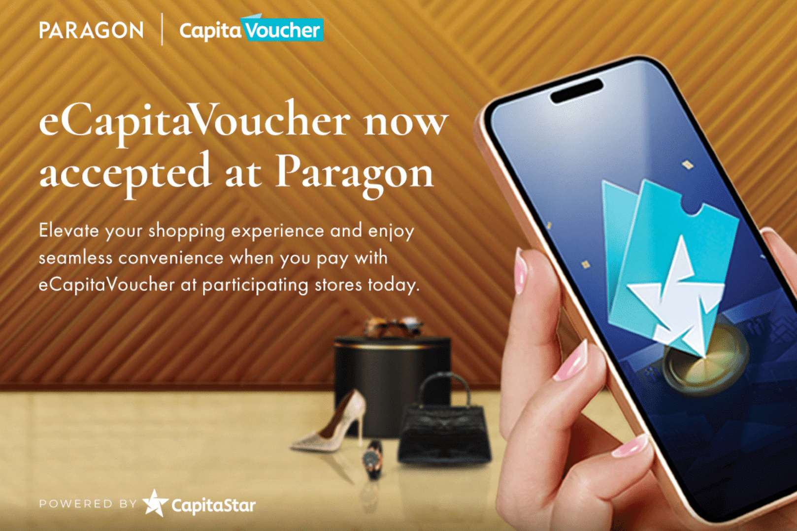 eCapitaVoucher is now accepted at Paragon! Elevate your shopping experience and enjoy seamless convenience when you pay with eCapitaVoucher at participating stores today.